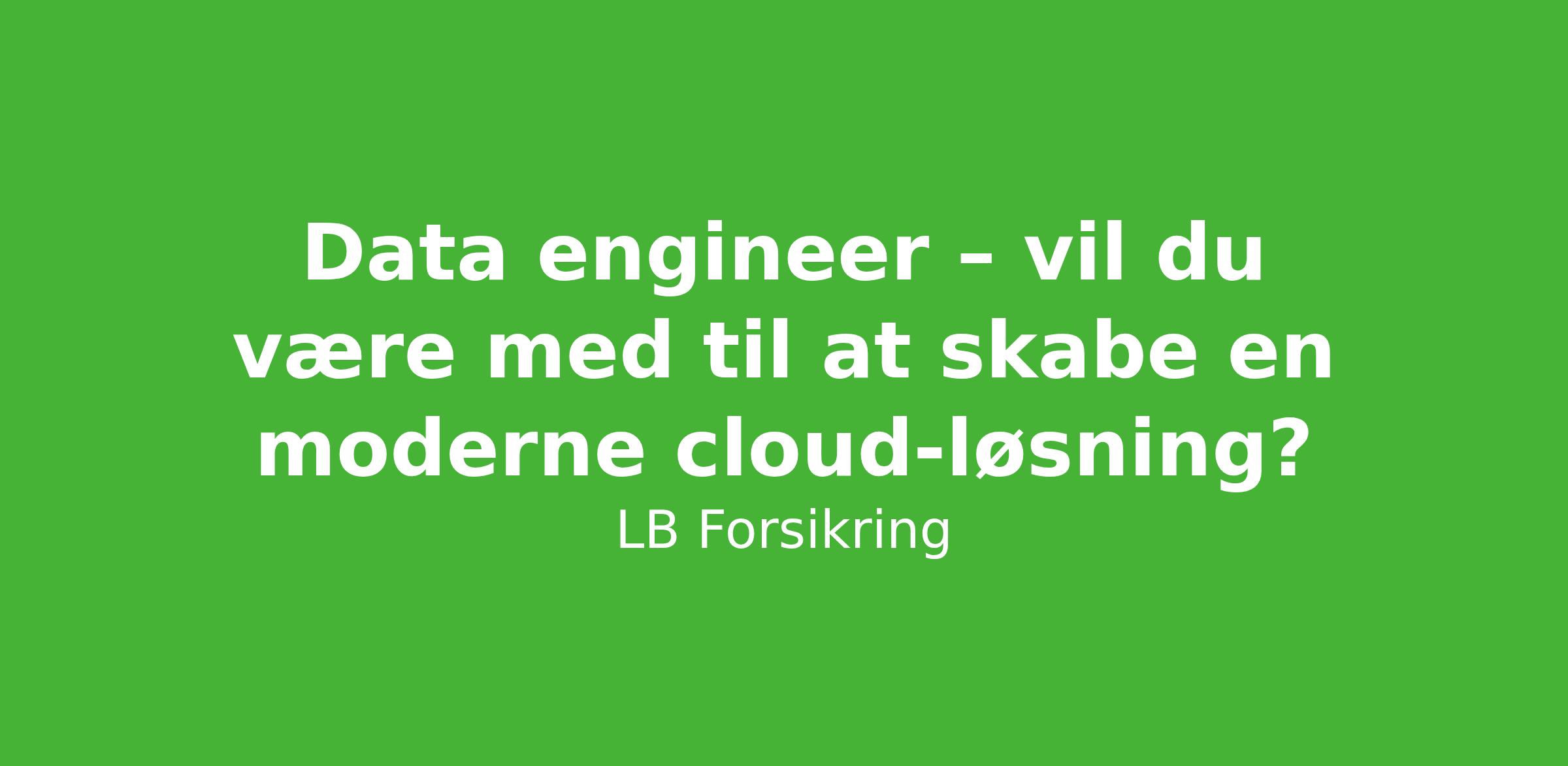 Vil du være med til at bygge fremtidens dataløsninger i skyen og skabe værdi gennem data? Hos LB Forsikring betragter vi data som en af vores mest værdsatte ressourcer, og nu har du muligheden for at slutte dig til vores Data Team, hvor vi udvikler vores moderne dataplatform i skyen.