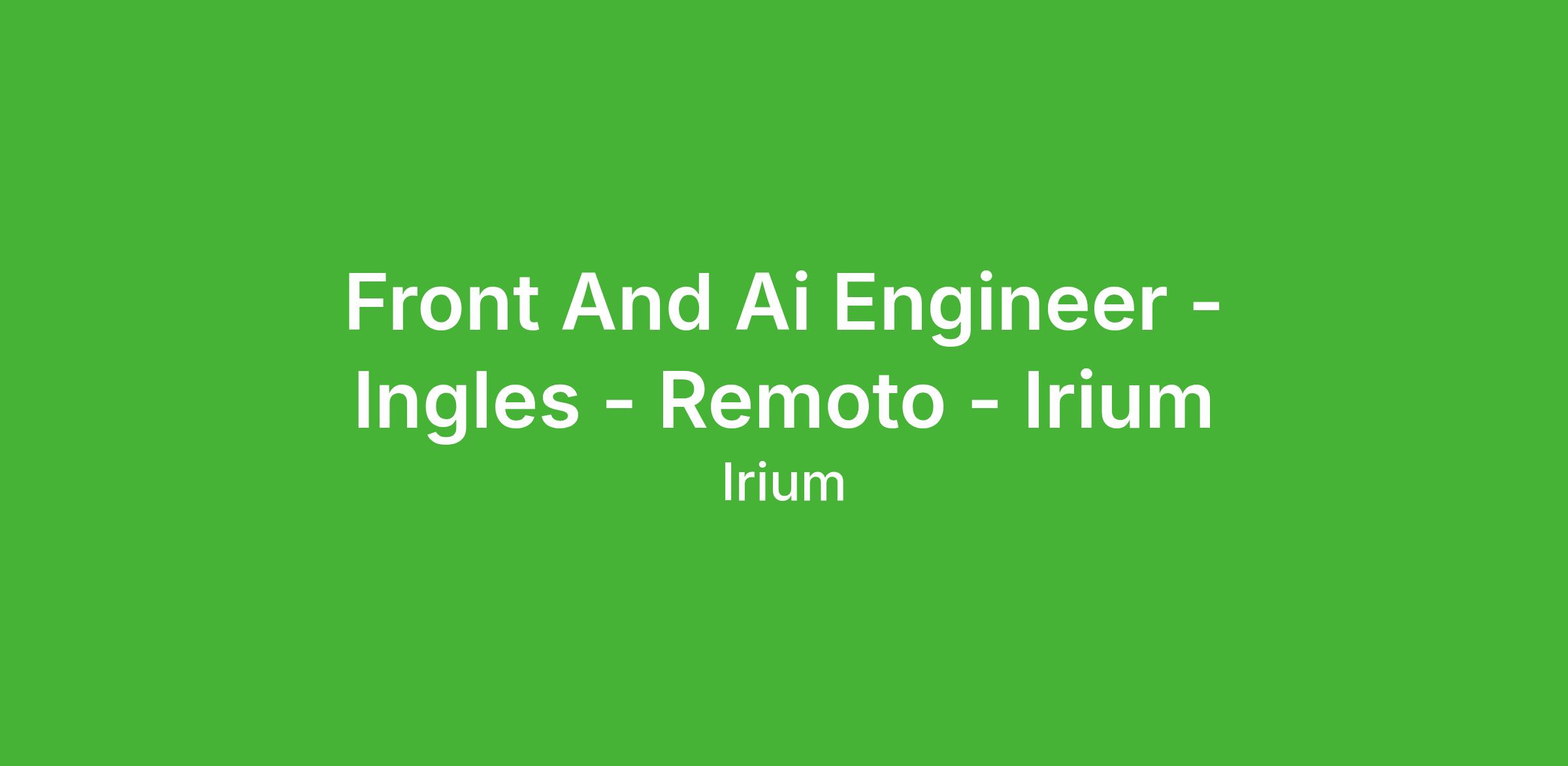 Front And Ai Engineer - Ingles - Remoto - Irium