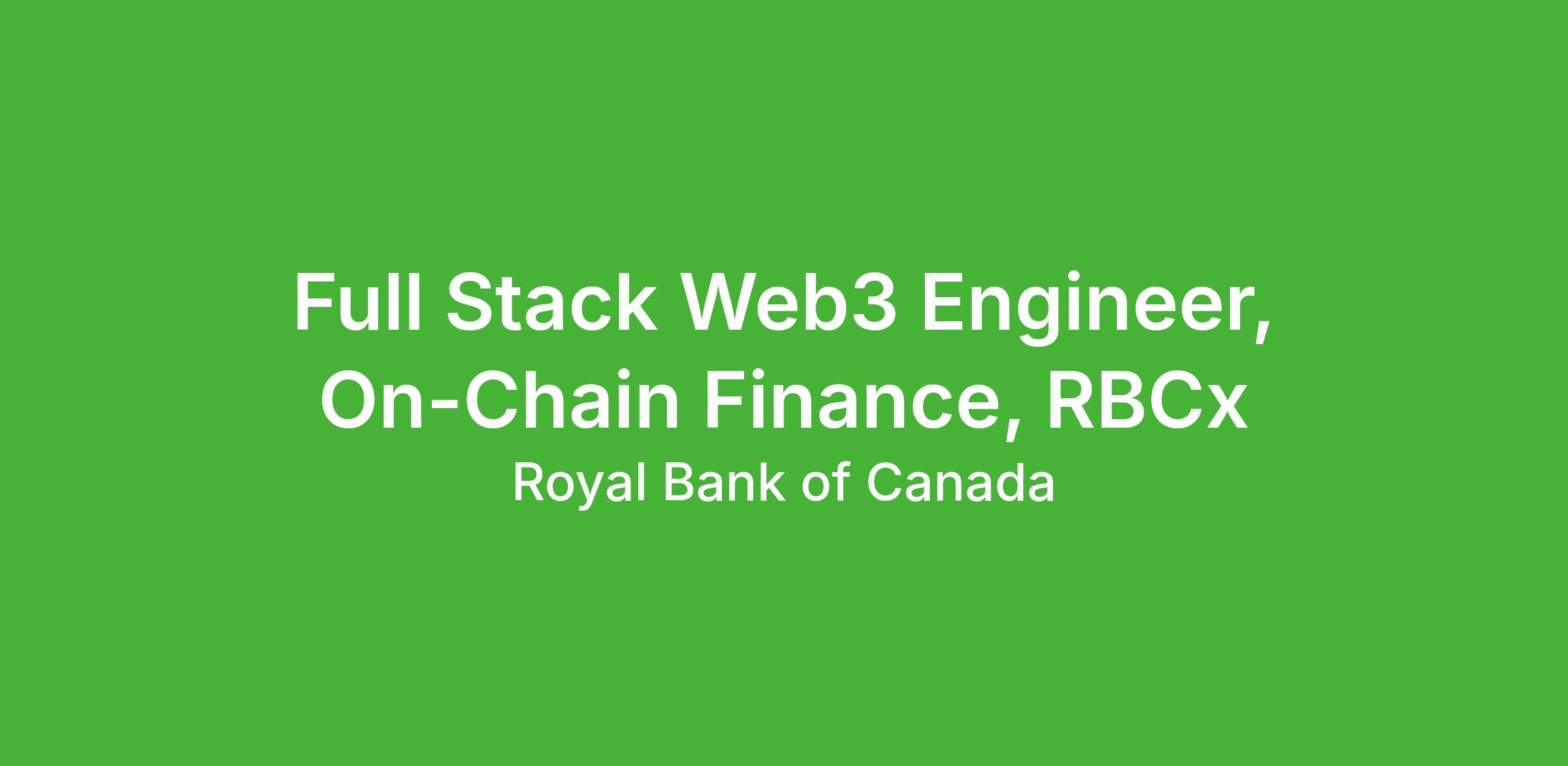We are seeking a Full Stack Web3 Engineer to support future-horizon innovation initiatives focused on on-chain finance and decentralized applications at RBC.