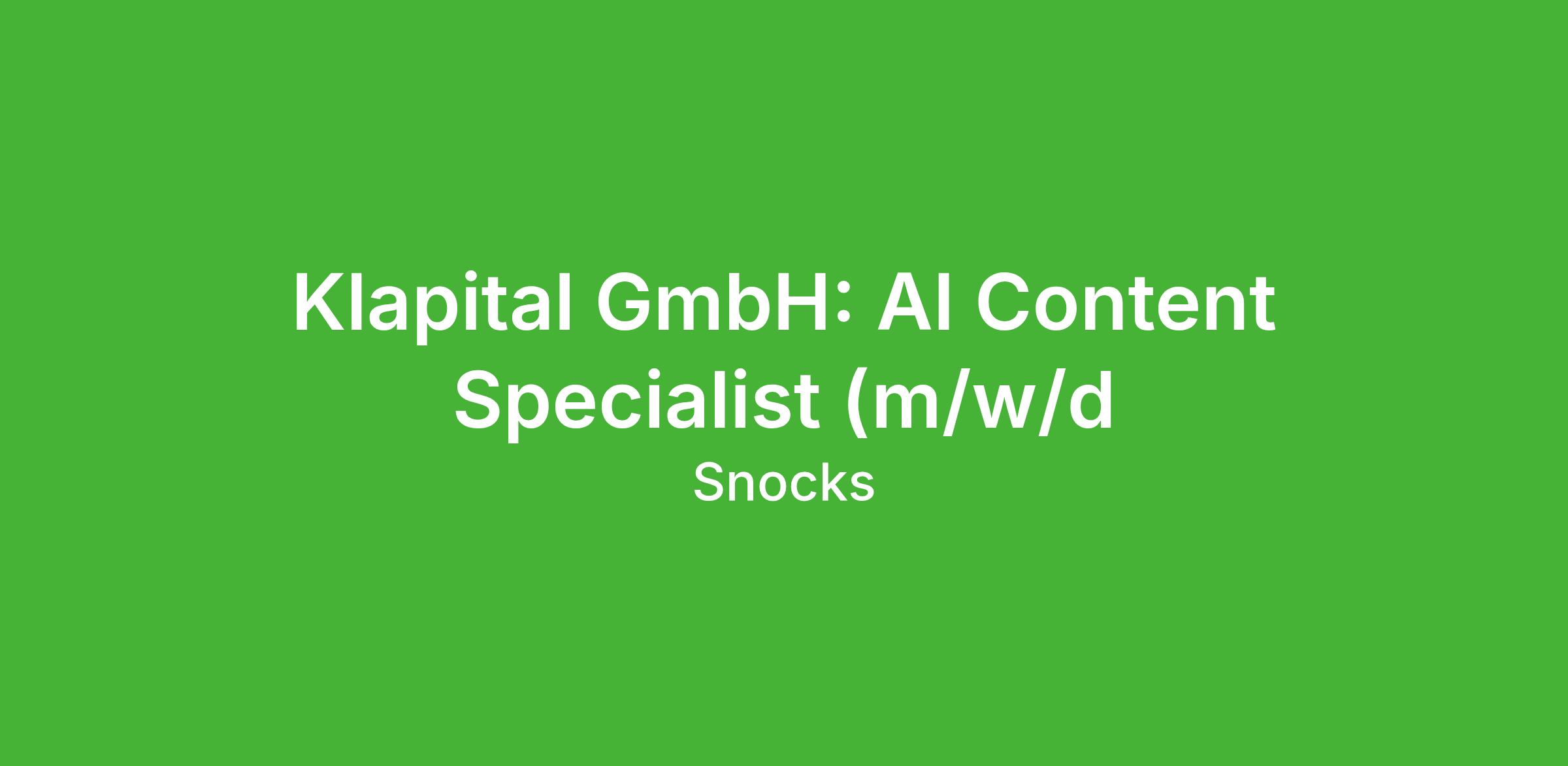 Klapital GmbH: AI Content Specialist (m/w/d
