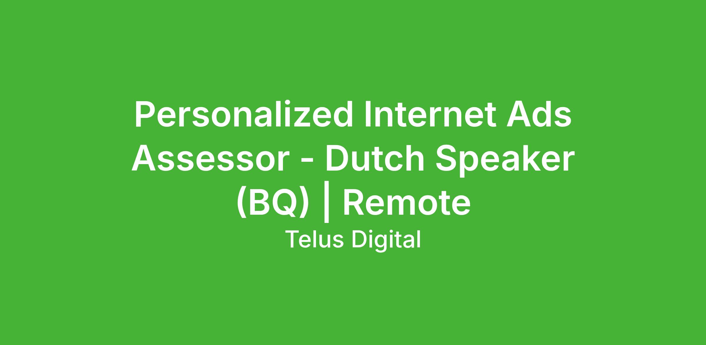 Personalized Internet Ads Assessor - Dutch Speaker (BQ) | Remote