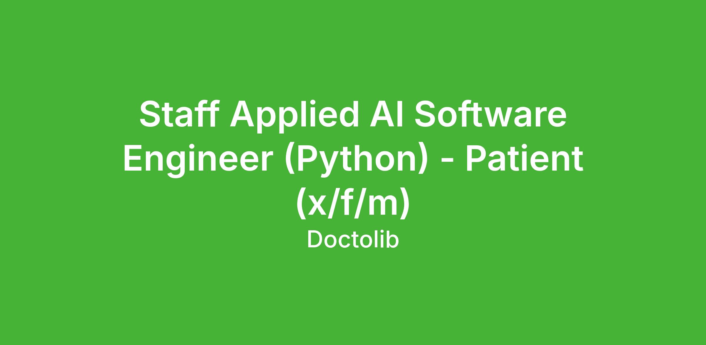 We are looking for a Staff Software Engineer to join the Patient domain . Your mission will be to transform the Doctolib app into a full health companion powered by AI, helping patients manage their health with accuracy, empathy, and safety. You will work in a feature team developing an AI-powered chat built to answer patients' questions about their or their loved ones' health. Working in the tech team at Doctolib means building innovative products and features to improve the daily lives of care teams and patients.